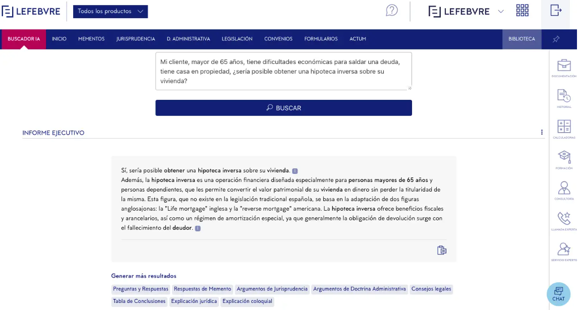 GenIA-L, disponible actualmente para los usuarios en España, ha sido diseñada específicamente para satisfacer las necesidades de los profesionales jurídicos, asegurando la confiabilidad y relevancia de los resultados. Su integración en las bases de datos de Lefebvre  es una de las principales ventajas dado que genera resultados estructurados con conclusiones fundamentadas en su riguroso contenido, de manera rápida y sencilla para el usuario.
