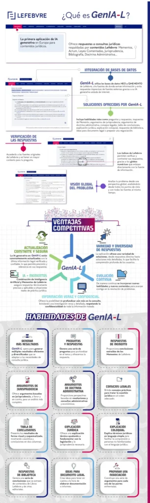 Lefebvre, compañía líder en software y contenido jurídico de España, se convierte en la primera empresa en Europa que ofrece una herramienta basada en IA generativa especializada en contenido jurídico. La nueva solución proporciona a los profesionales legales y asesores de empresas una ventaja competitiva significativa. El algoritmo de GenIA-L se adapta directamente a sus necesidades de información y de esta manera, les puede ofrecer  niveles de eficiencia superiores para el estudio y la preparación de los asuntos de sus clientes.